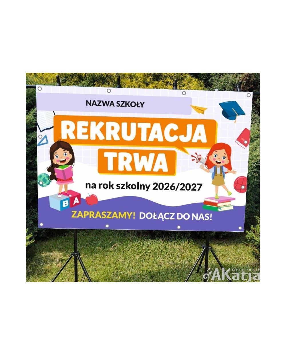 NA BANERZE MOŻEMY UMIEŚCIĆ ADRES, NAZWĘ SZKOŁY ,LOGO, DATĘ. KAŻDY INNY, DOWOLNY TEKST.