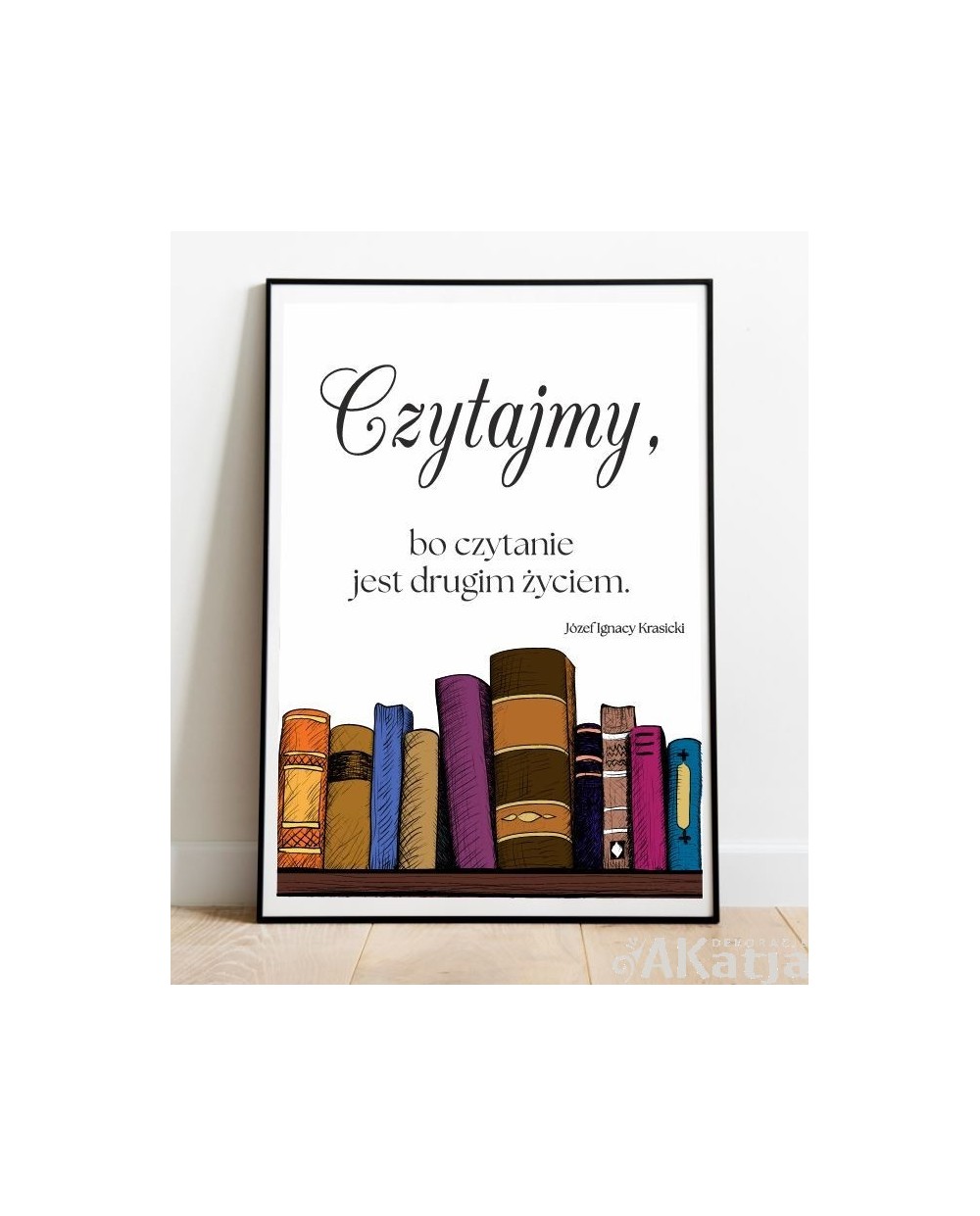 Plakat z napisem: Czytajmy, bo czytanie jest drugim życiem.