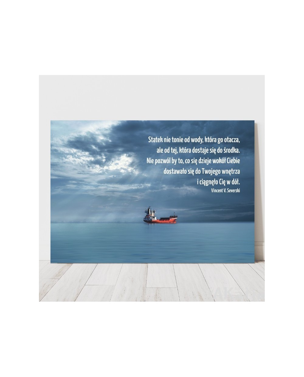 Plakat z napisem: Statek nie tonie od wody, która go otacza, ale od tej, która dostaje się do środka.