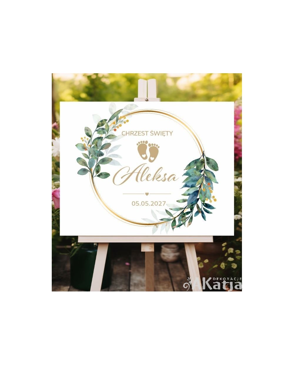 Dekoracyjna Plansza na Chrzest dziecka z imieniem,datą oraz graficznym motywem ozdobnym.