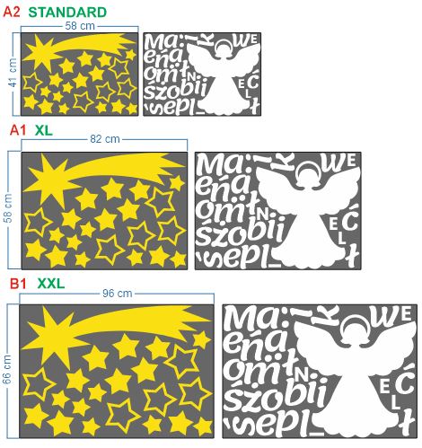 Standard około 150x90cm -litera duża: 8,5cm; mała: 4,5cm