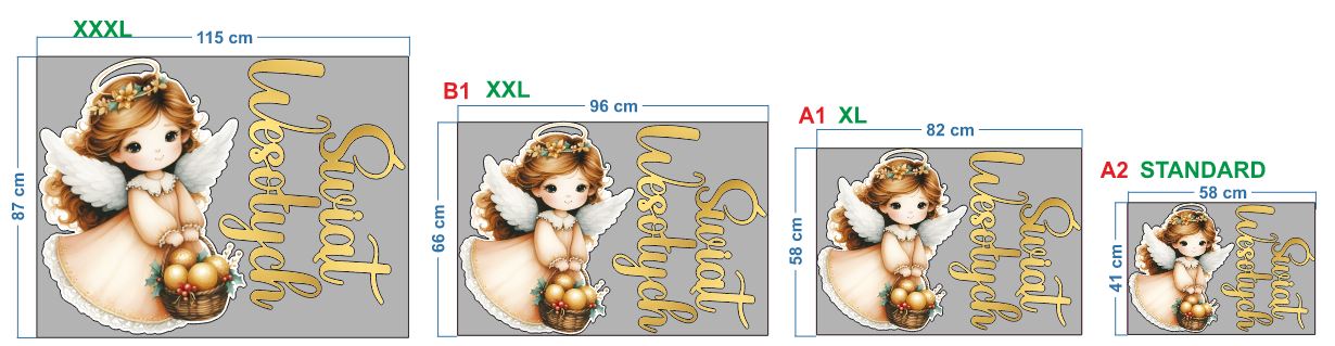 Standard około: 80x60cm- wysokość wersu: 17,5cm, wysokość postaci: 40cm
