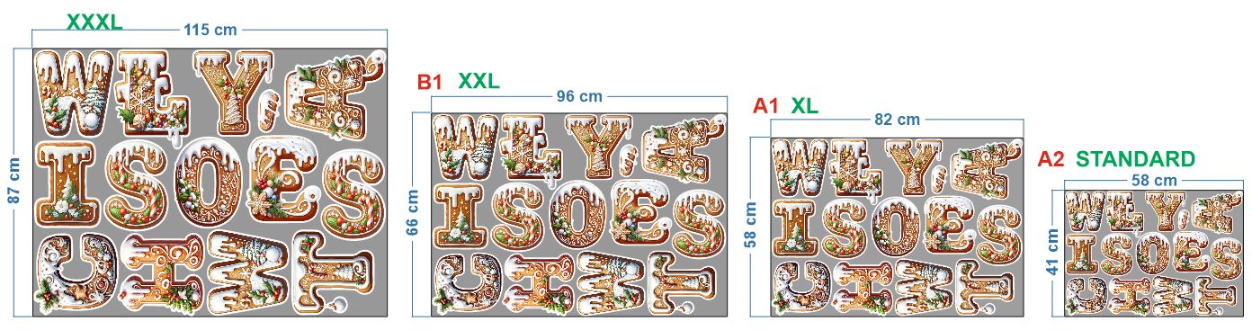Standard około: 110x40cm- wysokość litery: 13,5cm