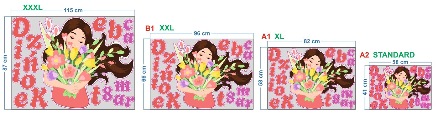XXXL około:170x90cm, litera duża:20cm, mała:11cm