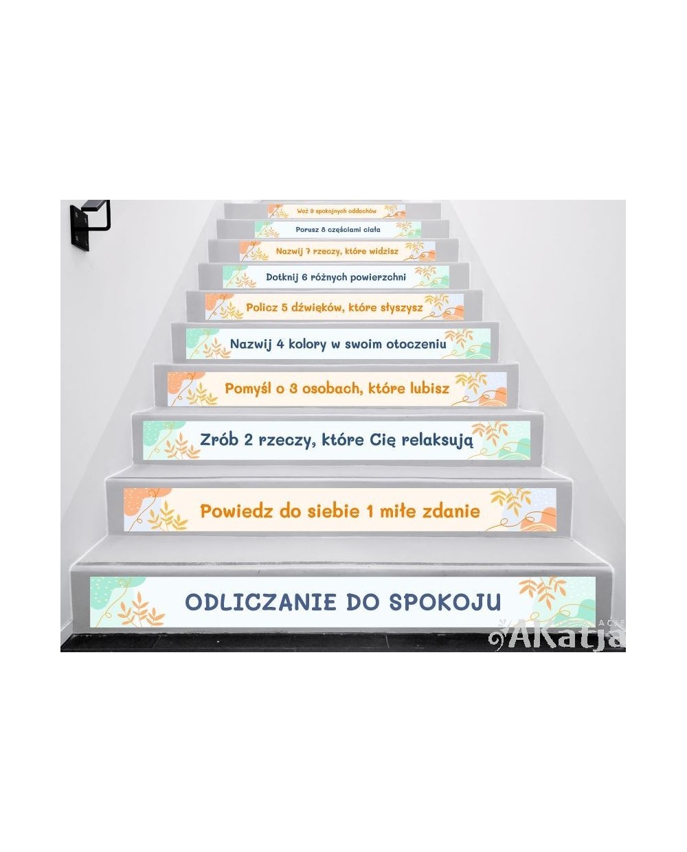 Jeśli potrzebujesz inny niż dostępny tutaj rozmiar naklejek na schody, inne kolory, chcesz dodać/usunąć niektóre treści - prosimy o kontakt na akatja@akatja.pl lub tel. 604 532 152. Przygotujemy dla Ciebie indywidualny projekt tak, aby naklejki idealnie pasowały do Twoich schodów.
