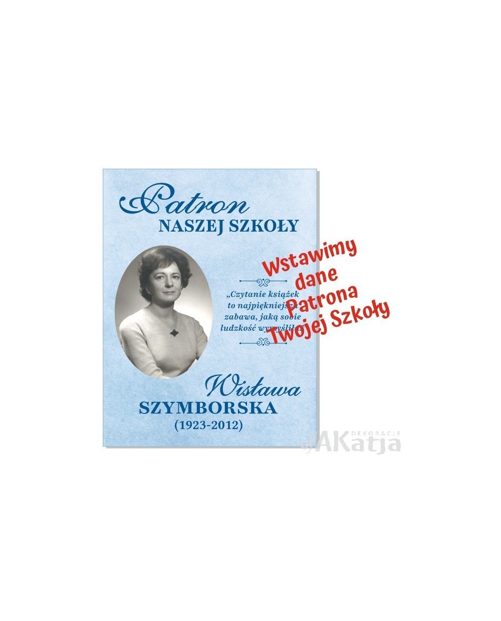 Na życzenie możemy wykonać również plakat z patronem szkoły, który można umieścić w ramce.