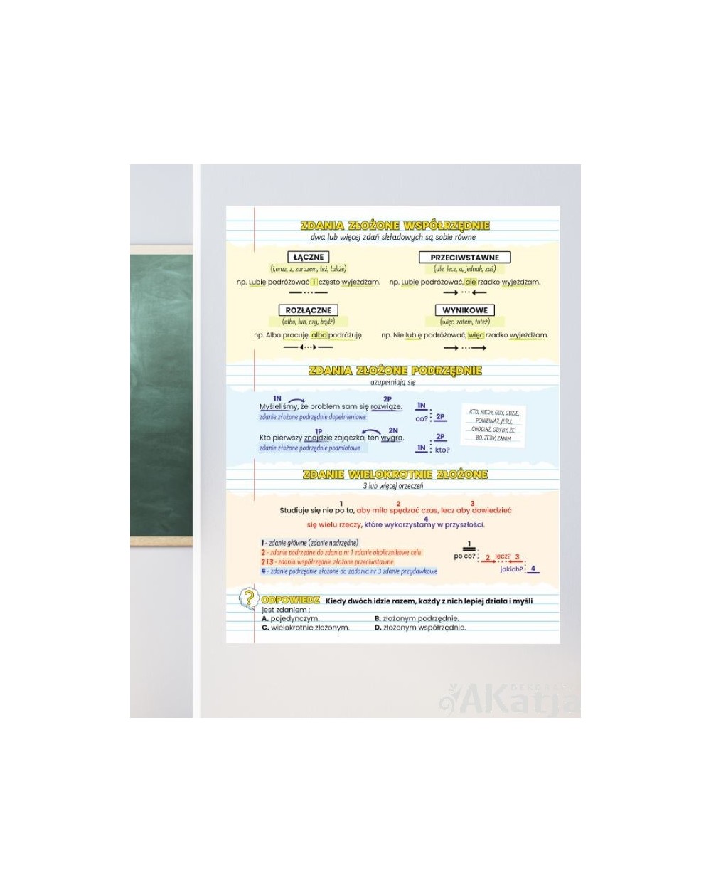 Naklejka ścienna „Zdania złożone współrzędnie, podrzędnie i wielokrotnie złożone"
