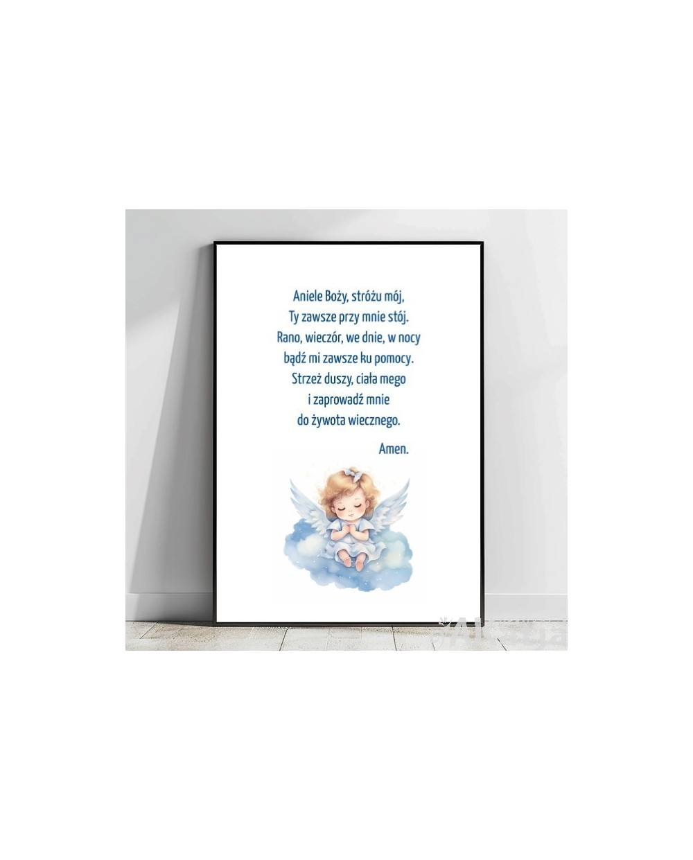 Plakat z tradycyjną modlitwą do Anioła Stróża.