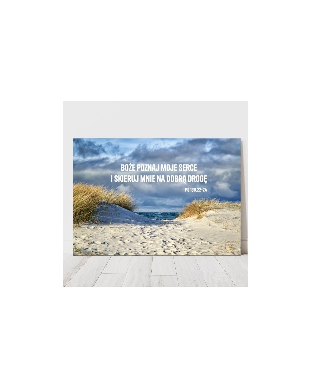 Plakat z cytatem: "Boże poznaj moje serce i skieruj mnie na dobrą drogę".