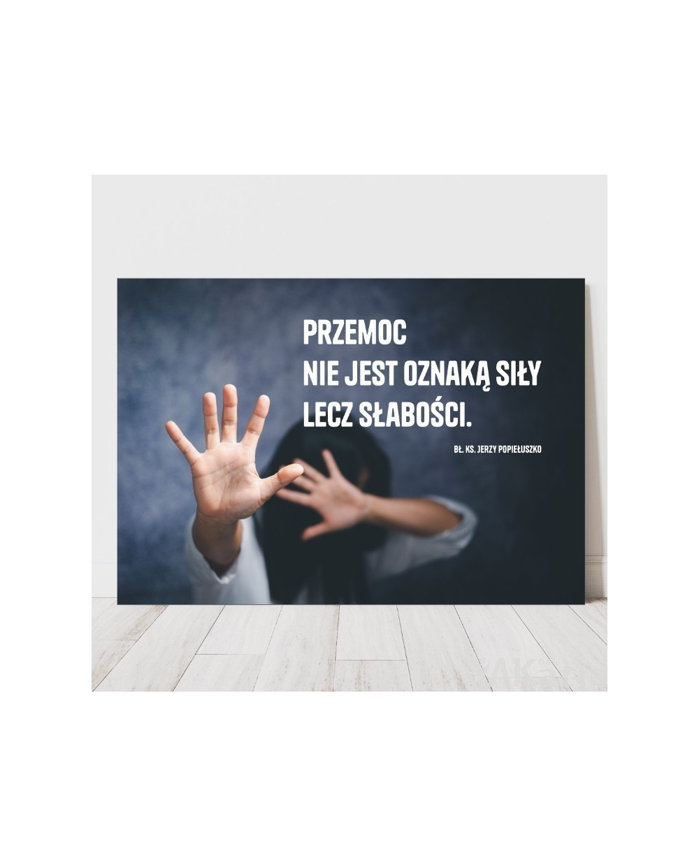 Plakat z cytatem: "Przemoc nie jest oznaką siły lecz słabości".