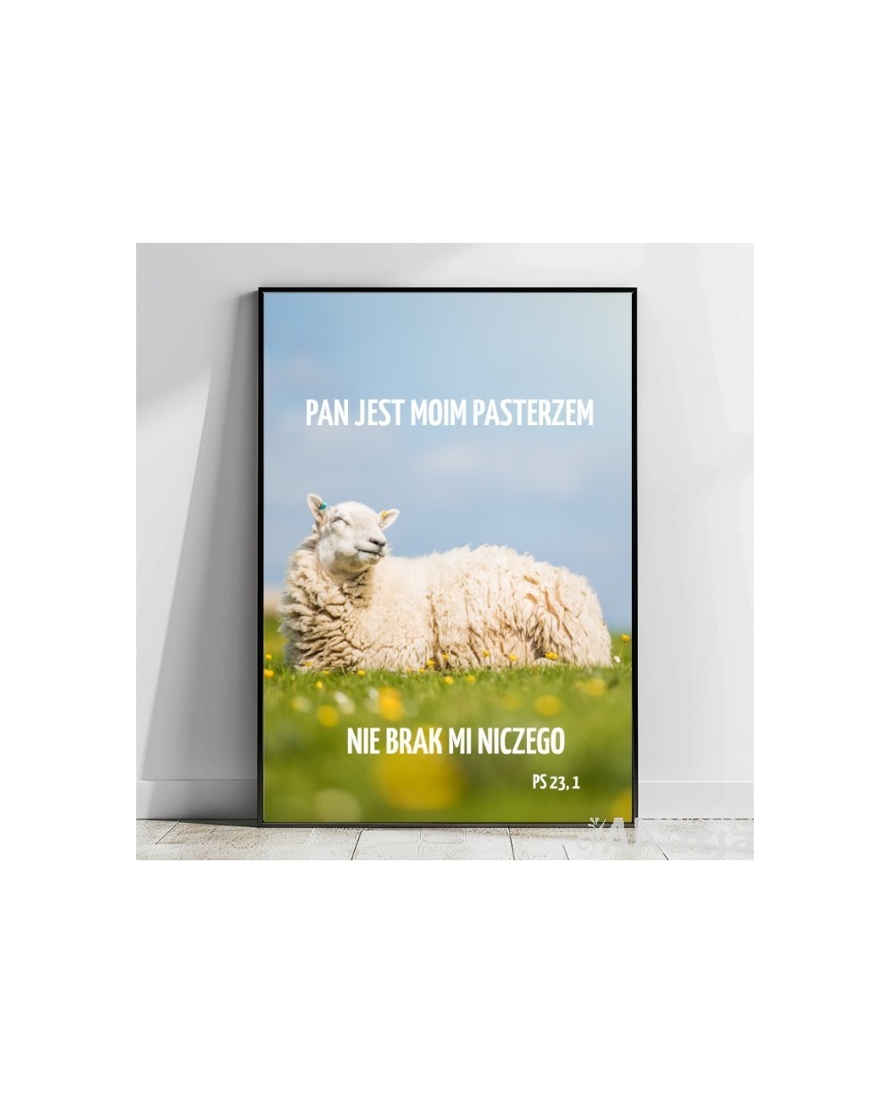 Plakat z cytatem: "Pan jest moim pasterzem nie brak mi niczego".