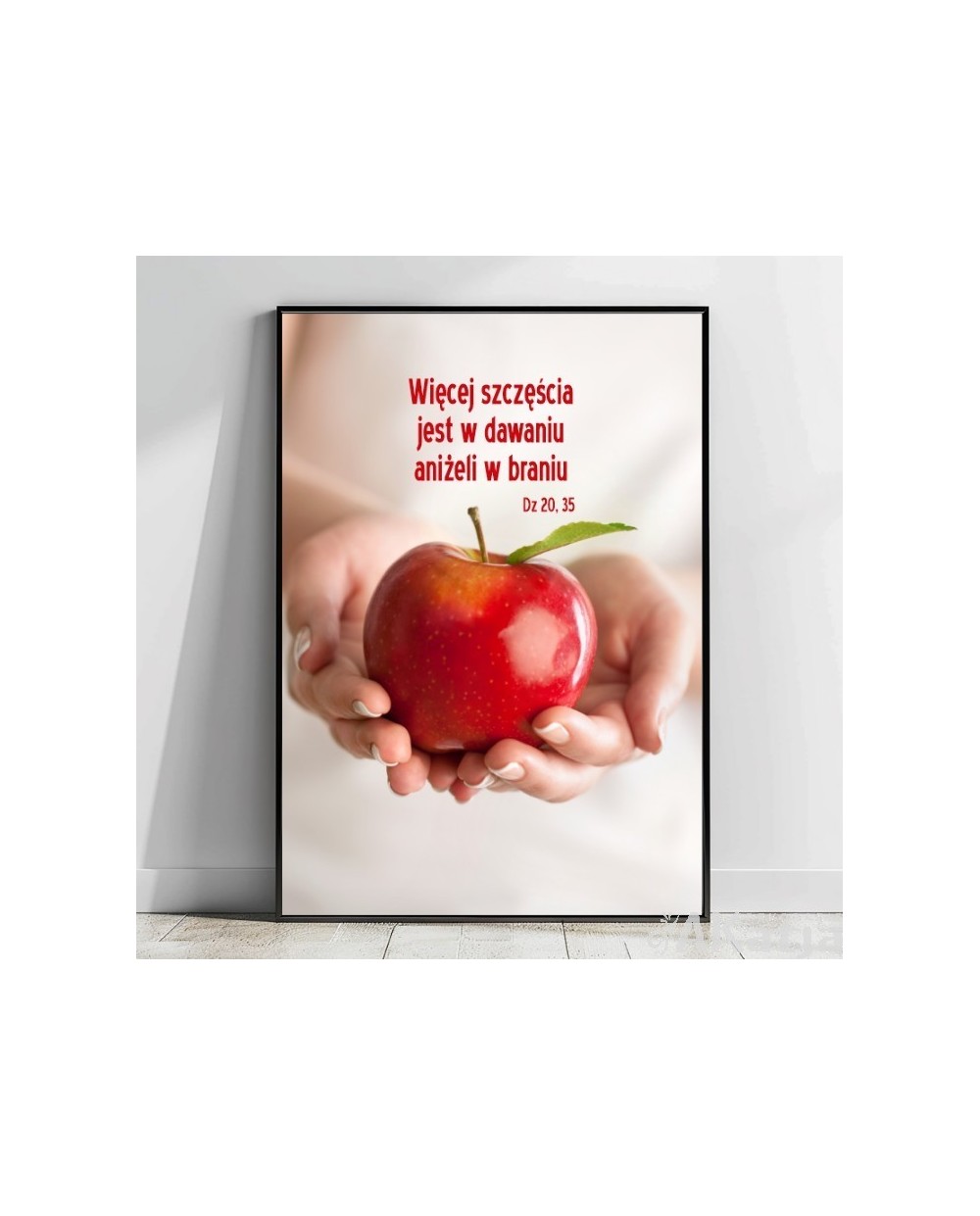 Plakat z cytatem: "Więcej szczęścia jest w dawaniu aniżeli w braniu".
