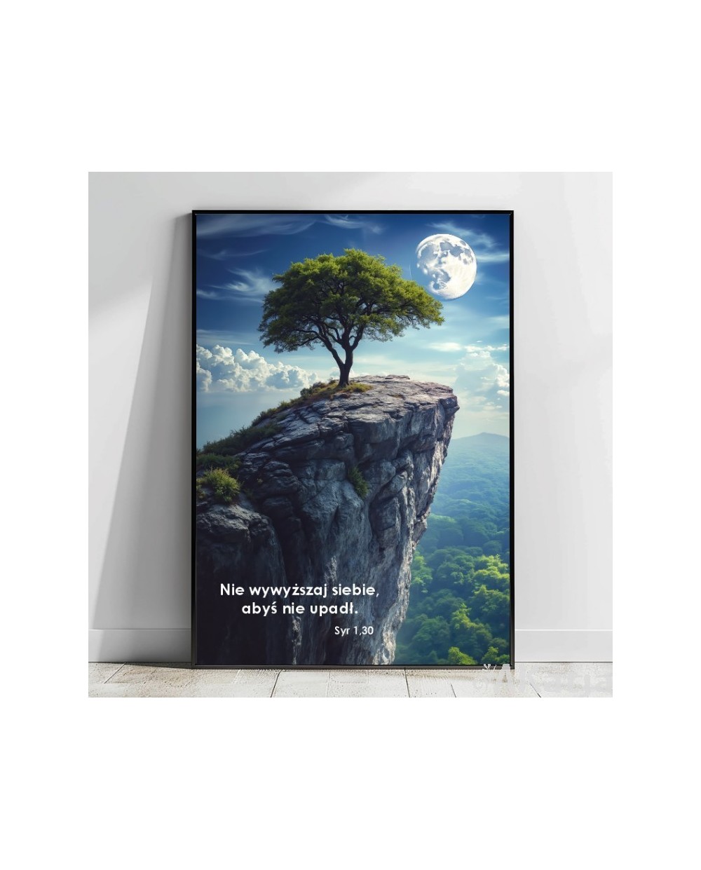 Plakat z cytatem: "Nie wywyższaj siebie abyś nie upadł".