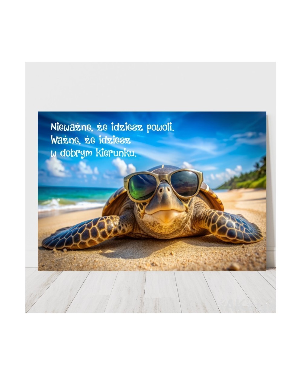 Plakat z napisem: Nieważne, że idziesz powoli. Ważne, że idziesz w dobrym kierunku.