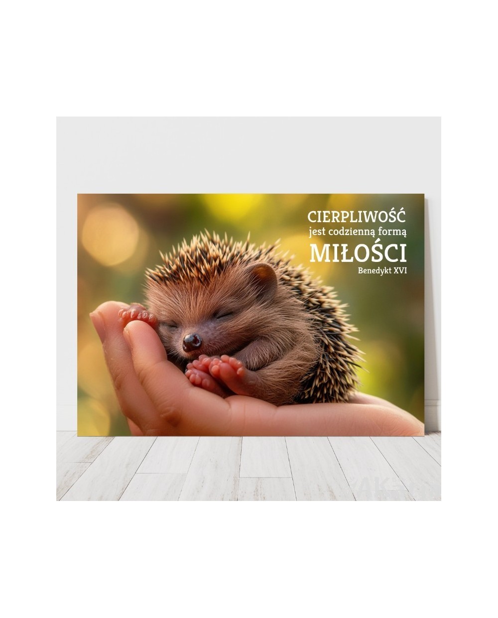Plakat z napisem: "Cierpliwość jest codzienną formą miłości"