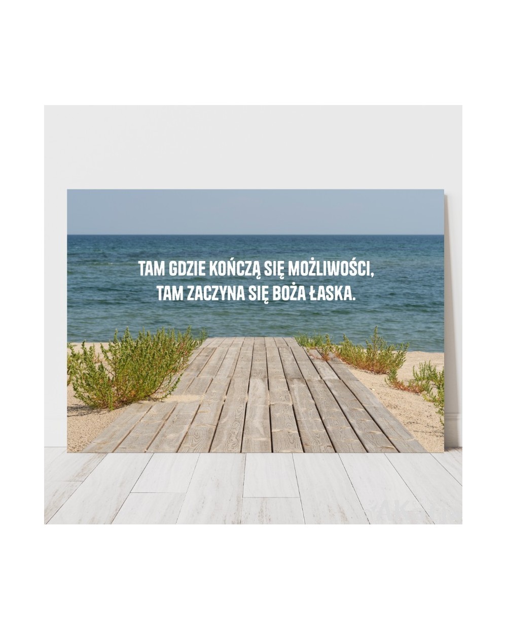 Plakat z napisem: "Tam, gdzie kończą się możliwości, tam zaczyna się Boża Łaska"