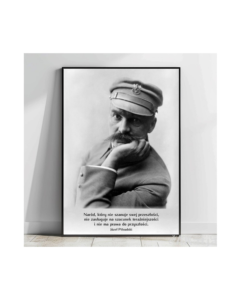 Plakat z napisem: Naród, który nie szanuje swej przeszłości, nie zasługuje na szacunek teraźniejszości i nie ma prawa do przyszłości. Józef Piłsudski
