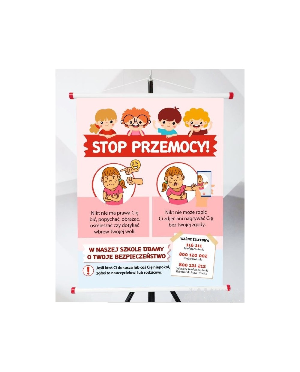 Plansza - plakat z treścią edukacyjną wydrukowana na wodoodpornej tkaninie winylowej, oprawiona w rurki z zaślepkami i sznurkiem, które umożliwiają powieszenie planszy na haczyku, gwoździu, pinezce itp. Dzięki dołączonym rzepom planszę można zwinąć i łatwo przenosić, przechowywać.