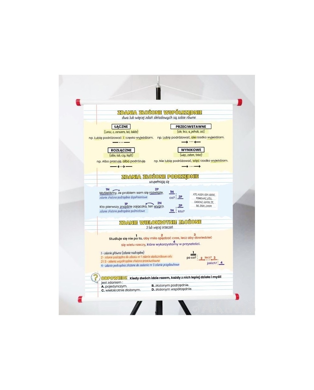 Plansza do zawieszania- Zdania złożone współrzędnie, podrzędnie i wielokrotnie złożone