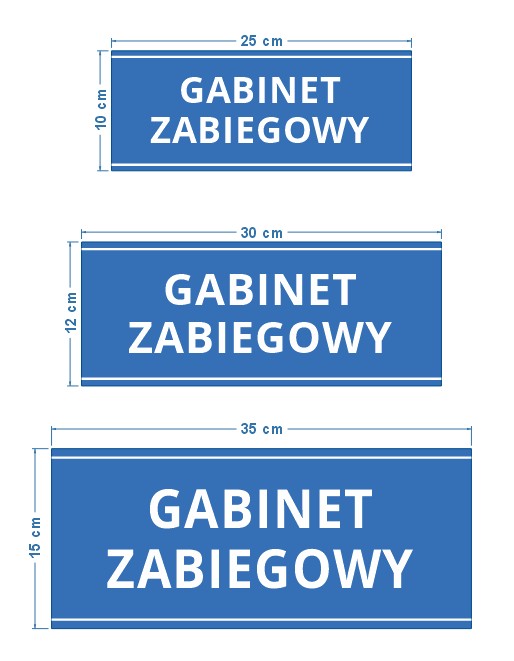 Zamiast projektować oznaczenia od zera, możesz skorzystać z gotowych wzorów i dopasować je do swojej placówki. Wybierasz treść, kolor, rozmiar oraz formę wykonania – naklejkę lub tabliczkę.