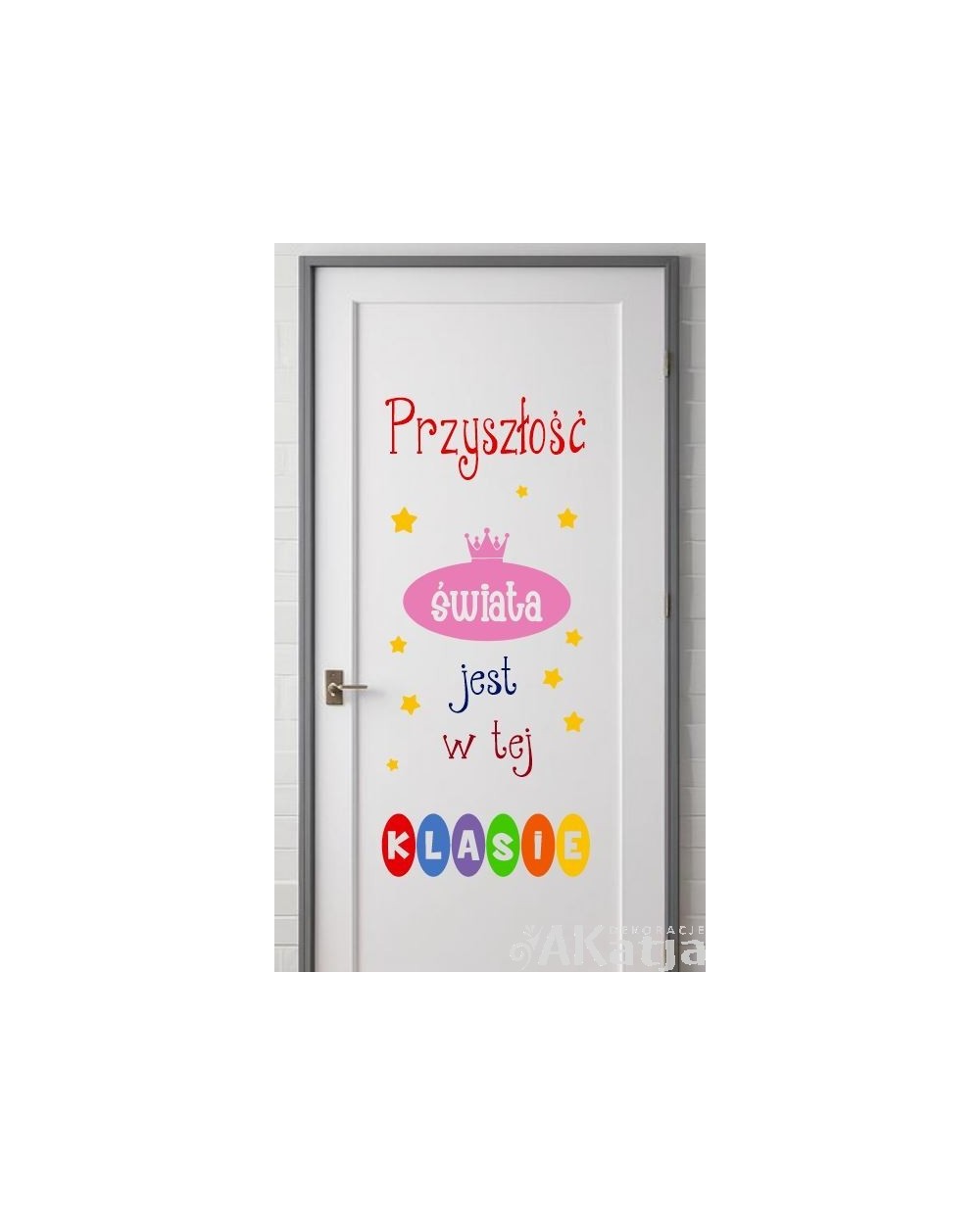 Naklejka na drzwi sali lekcyjnej do szkoły ale również na ścianę czy inną powierzchnię gładką.