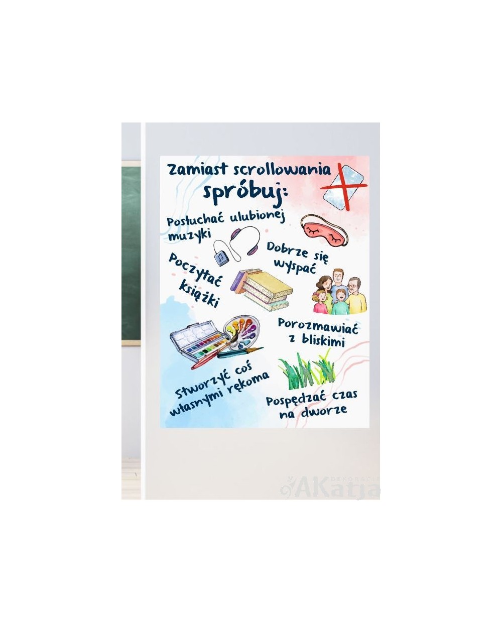 Naklejka samoprzylepna z wskazówkami jak można spędzić czas nie używając telefonu, tableta czy komputera.