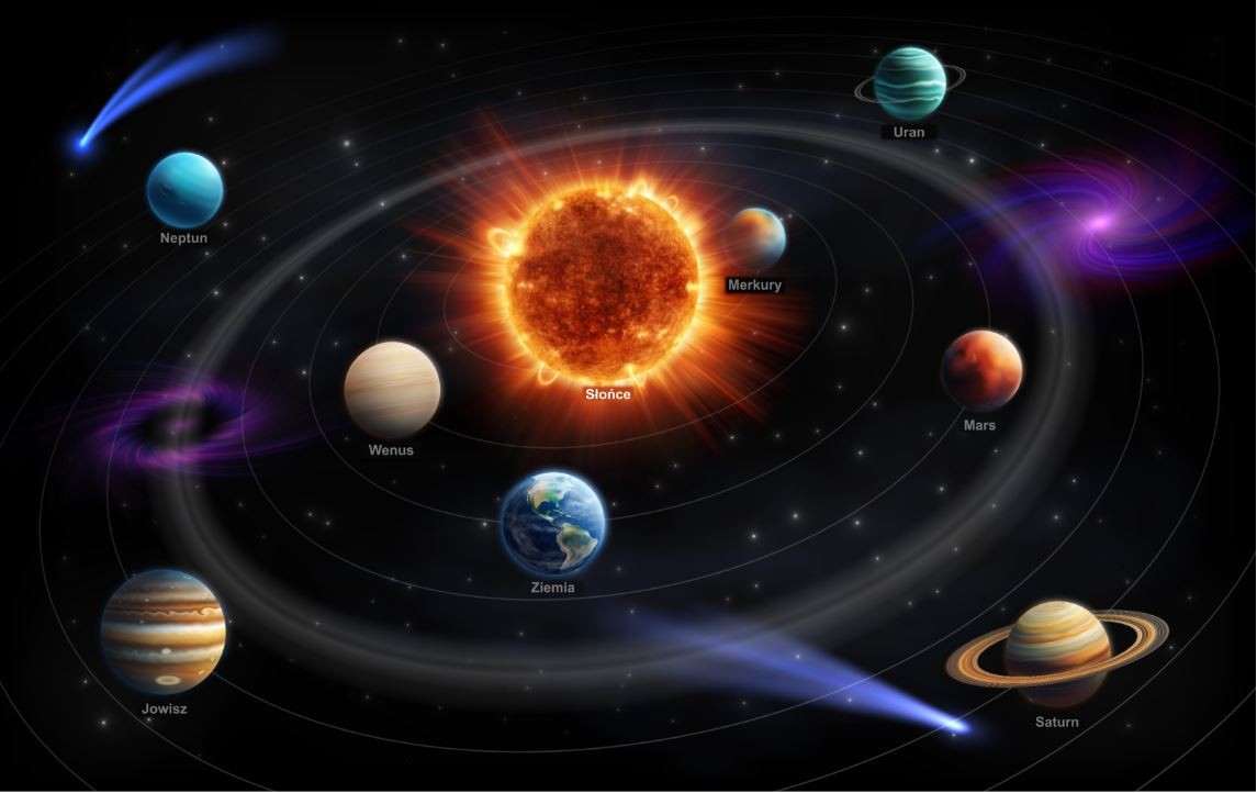 Tapeta lub okleina z kolorowym wzorem kosmosu wraz z planetami
