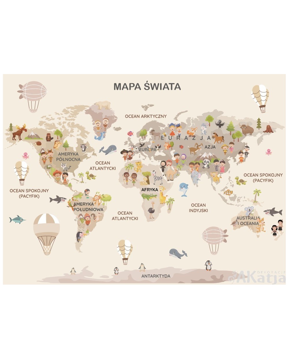 Tapeta lub okleina Pastelowa mapa świata dla dzieci